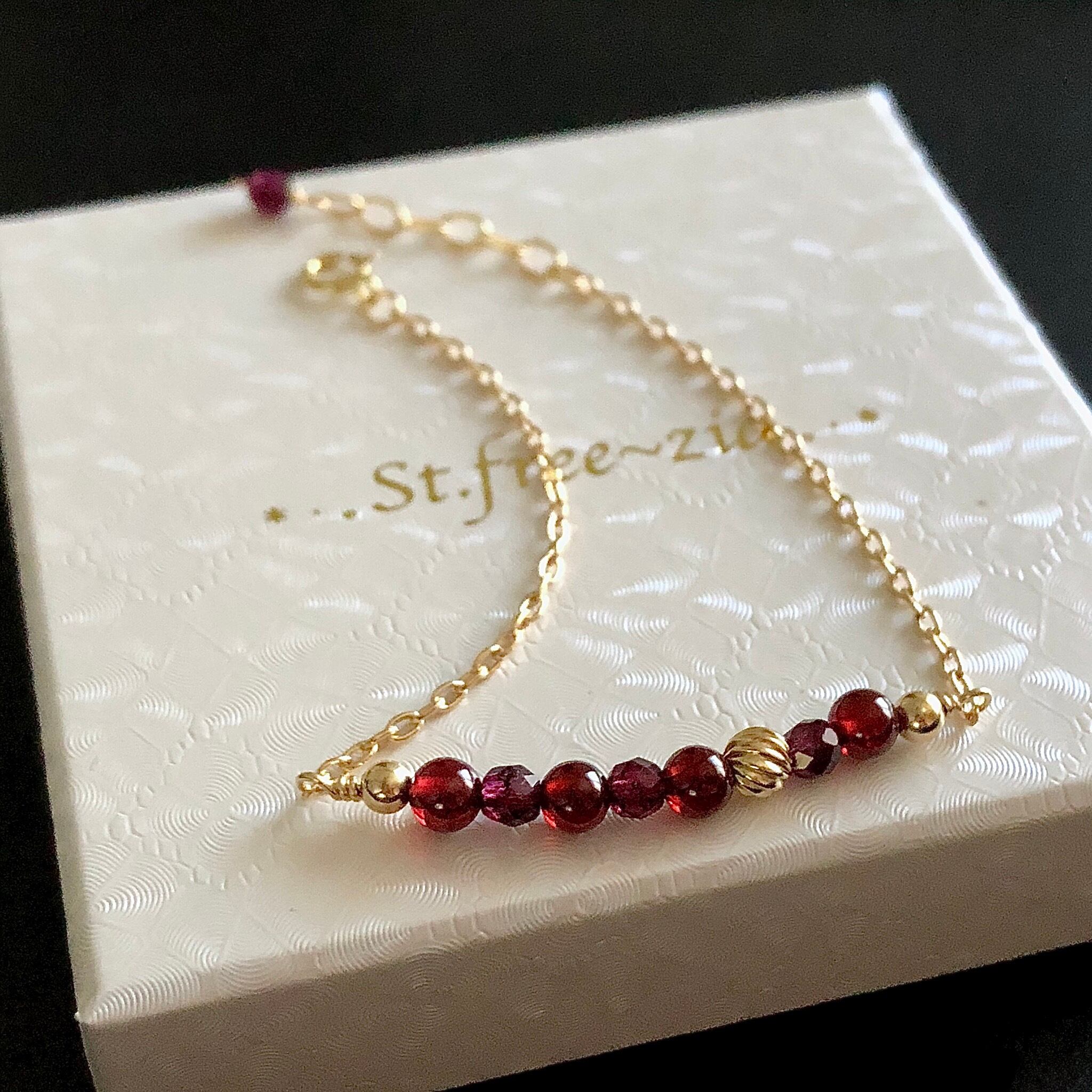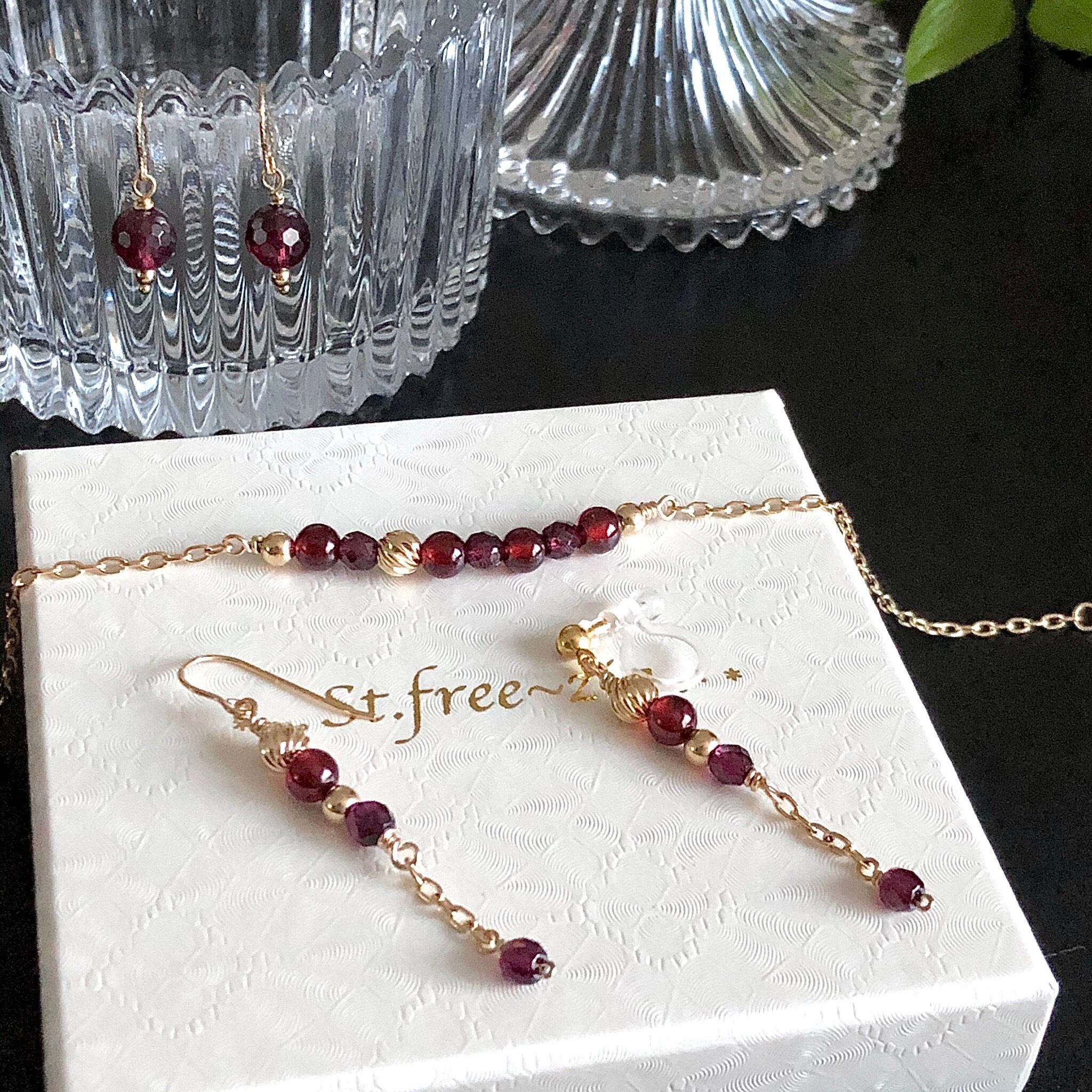 みずみずしい赤い果実のようなガーネットのラウンドビーズと、
