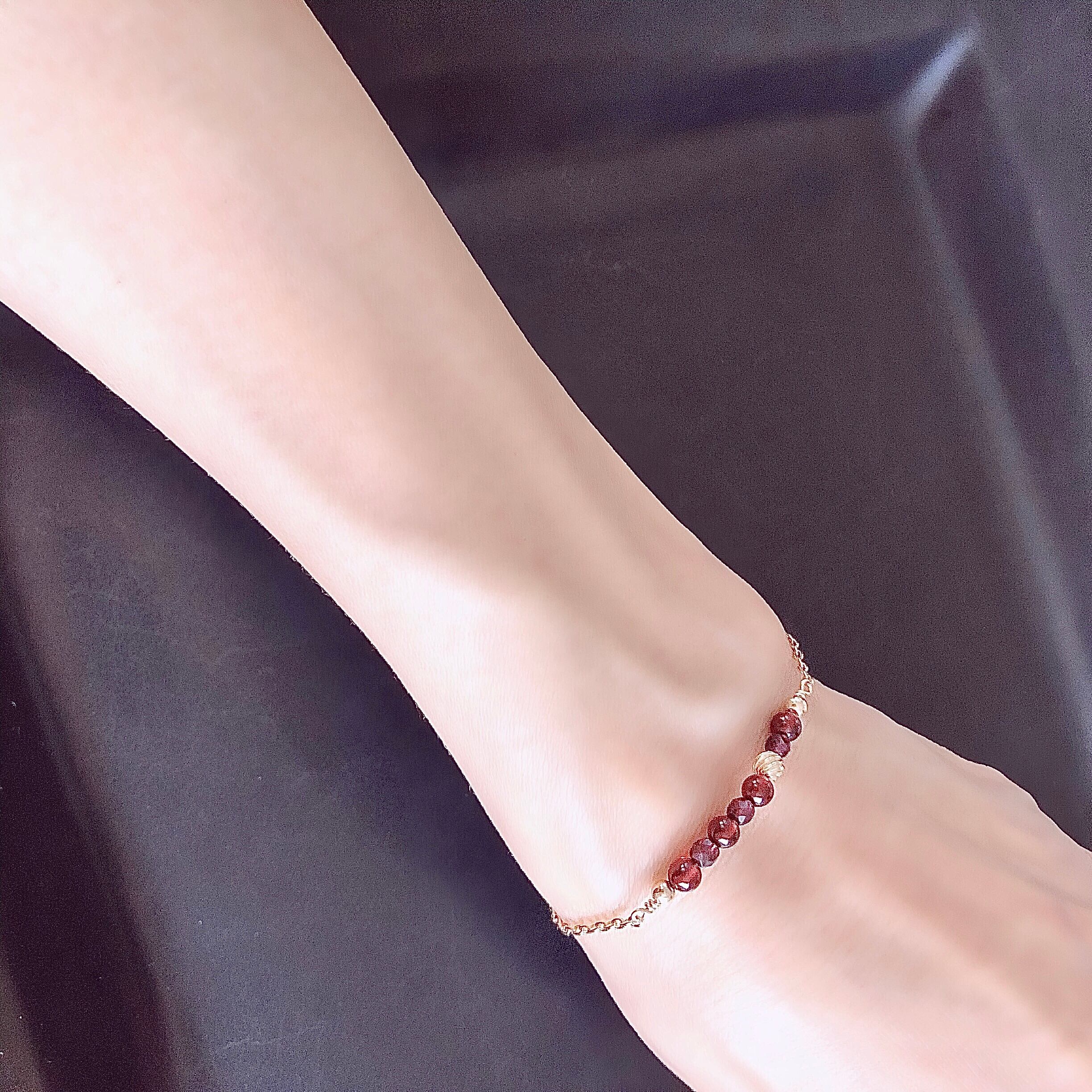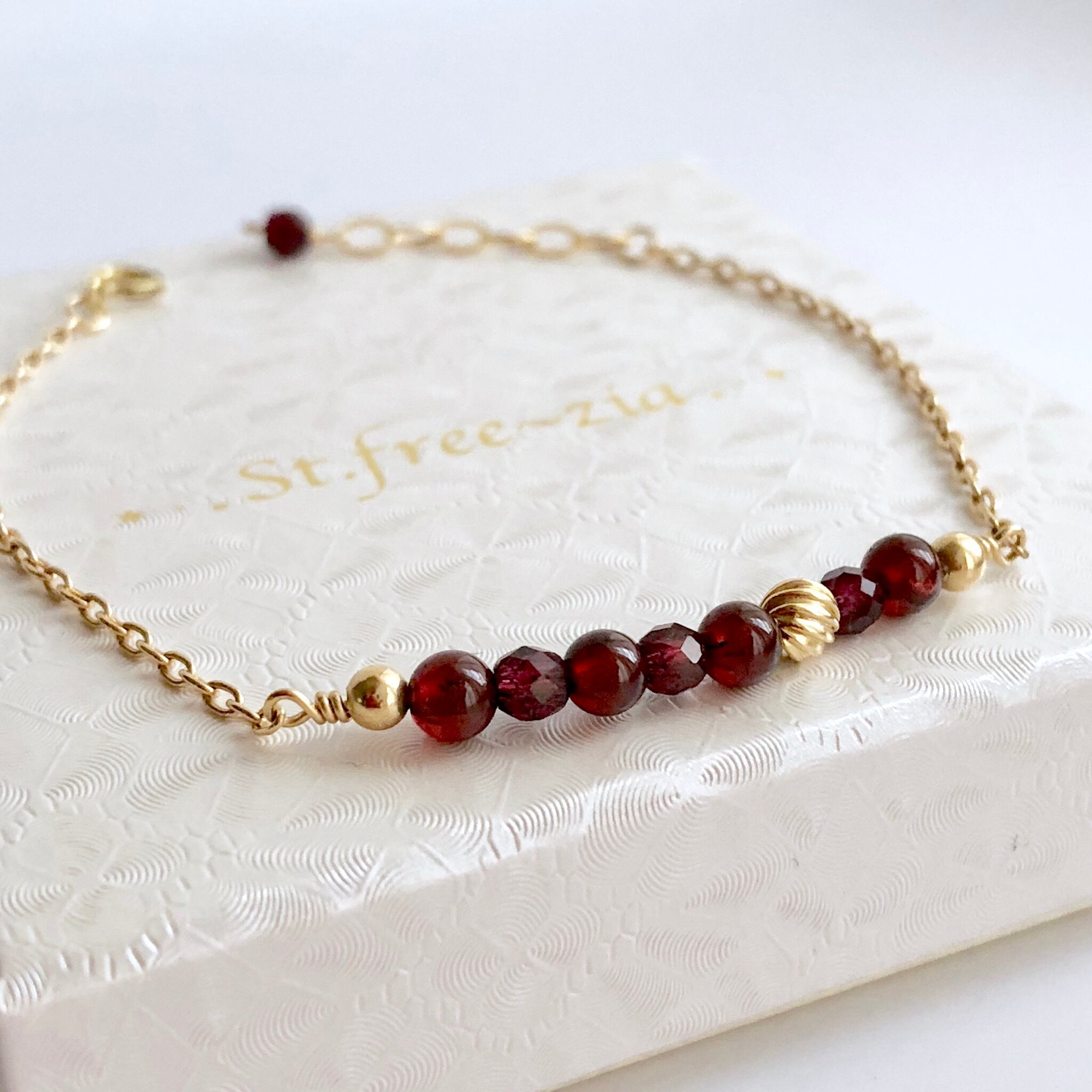 ラウンドカットされて紫味を帯びたシックなレッドがキラキラ輝くロードライトガーネットを組んだブレスレットです。