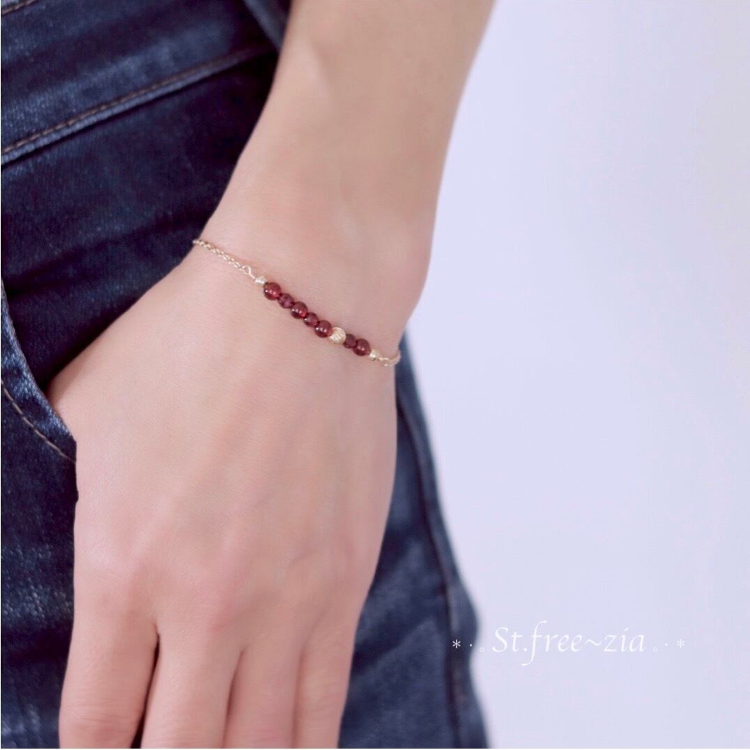 14kgf " ガーネット " &ラウンドツイストビーズのブレスレット