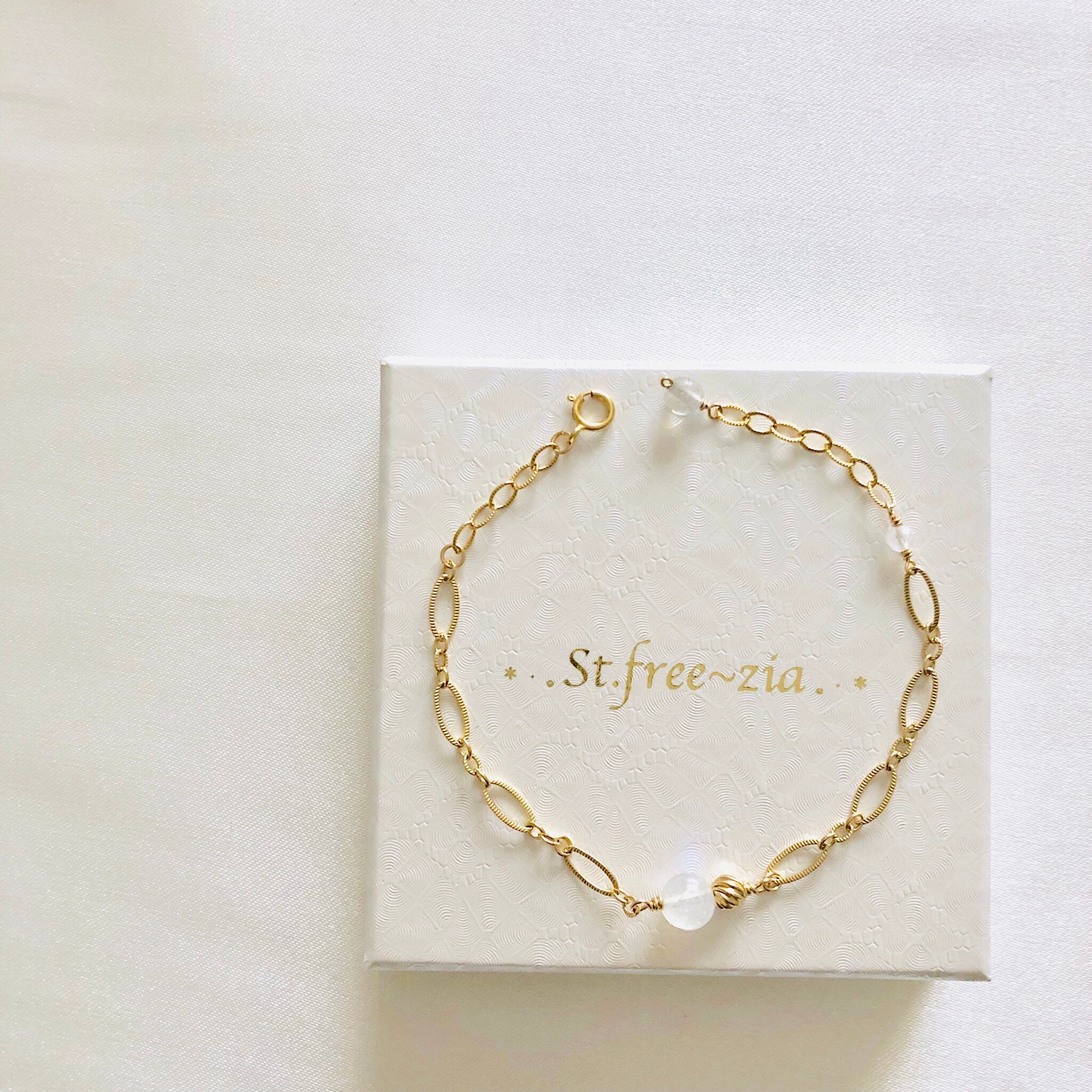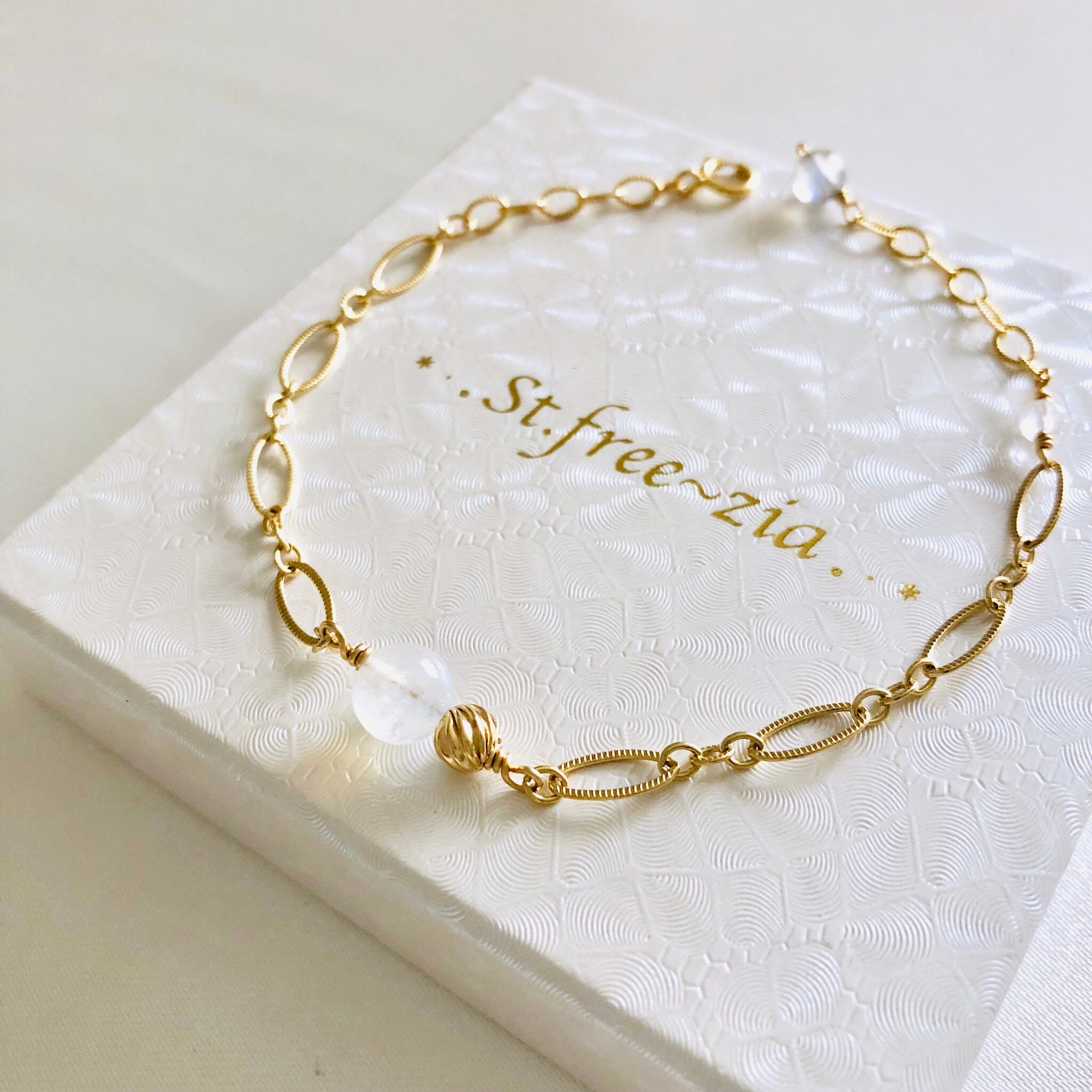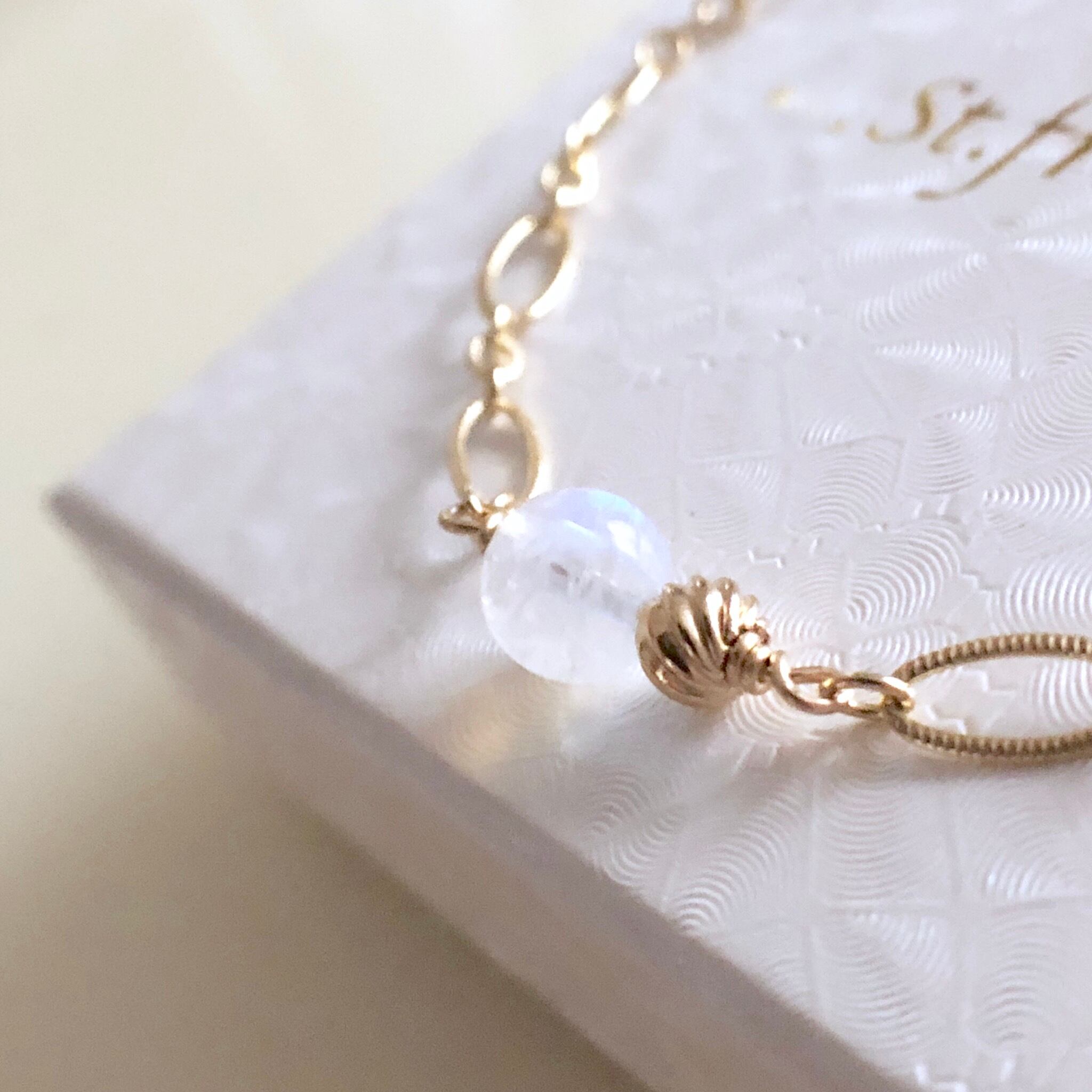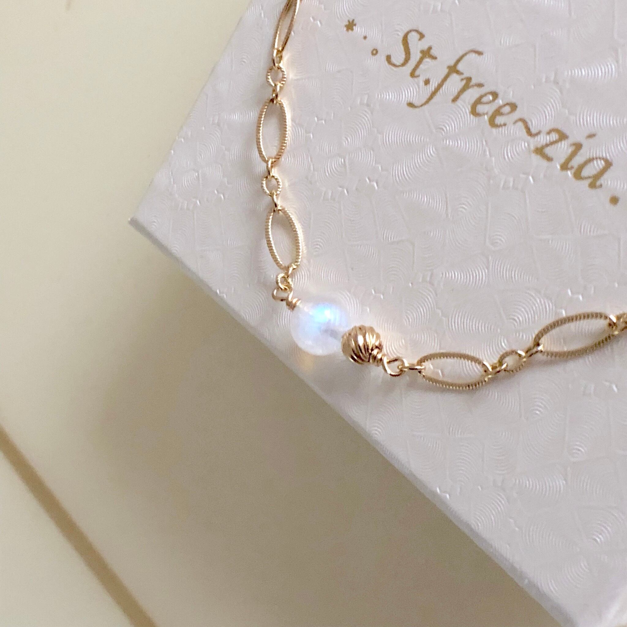 14kgf " レインボームーンストーン " の フィガロチェーンブレスレット