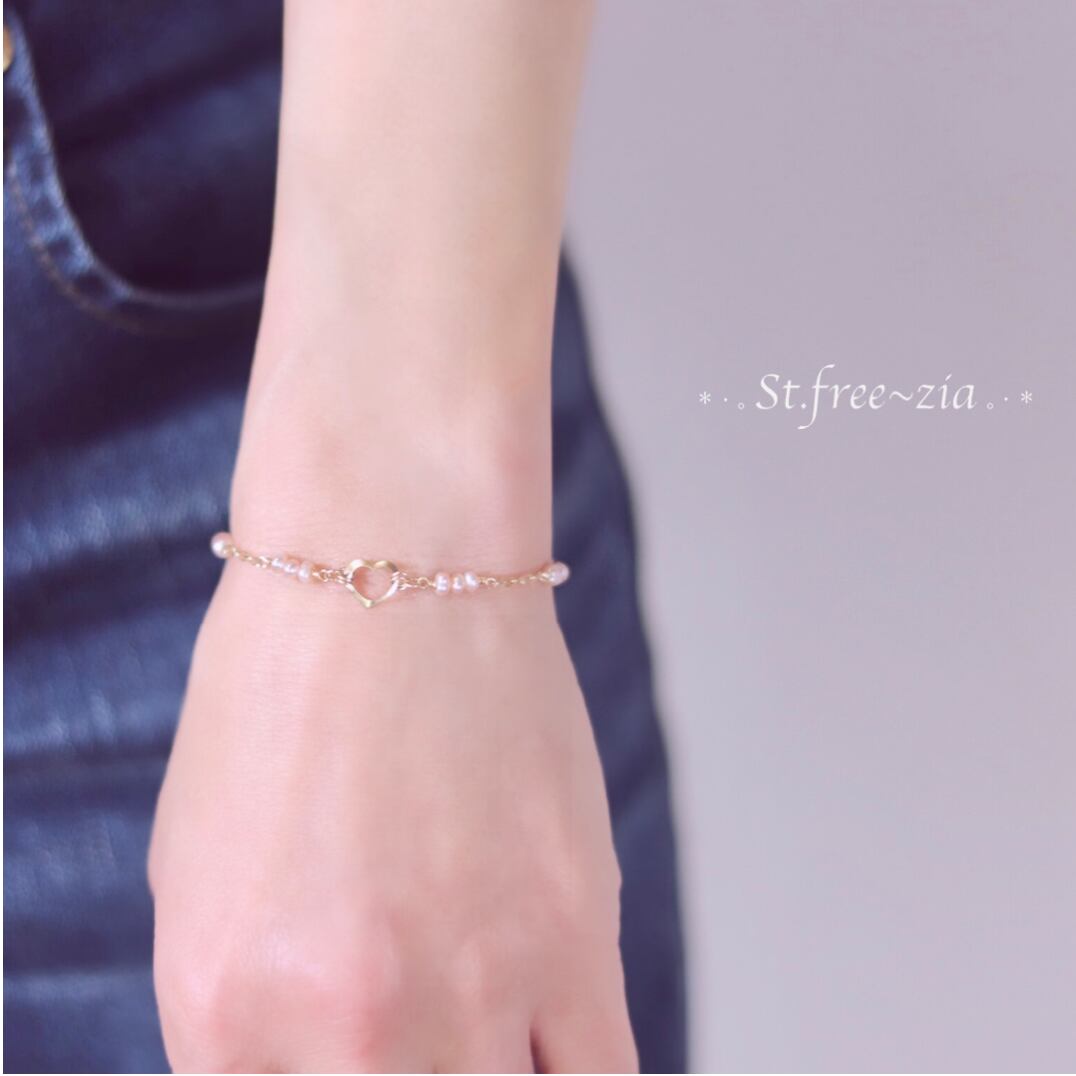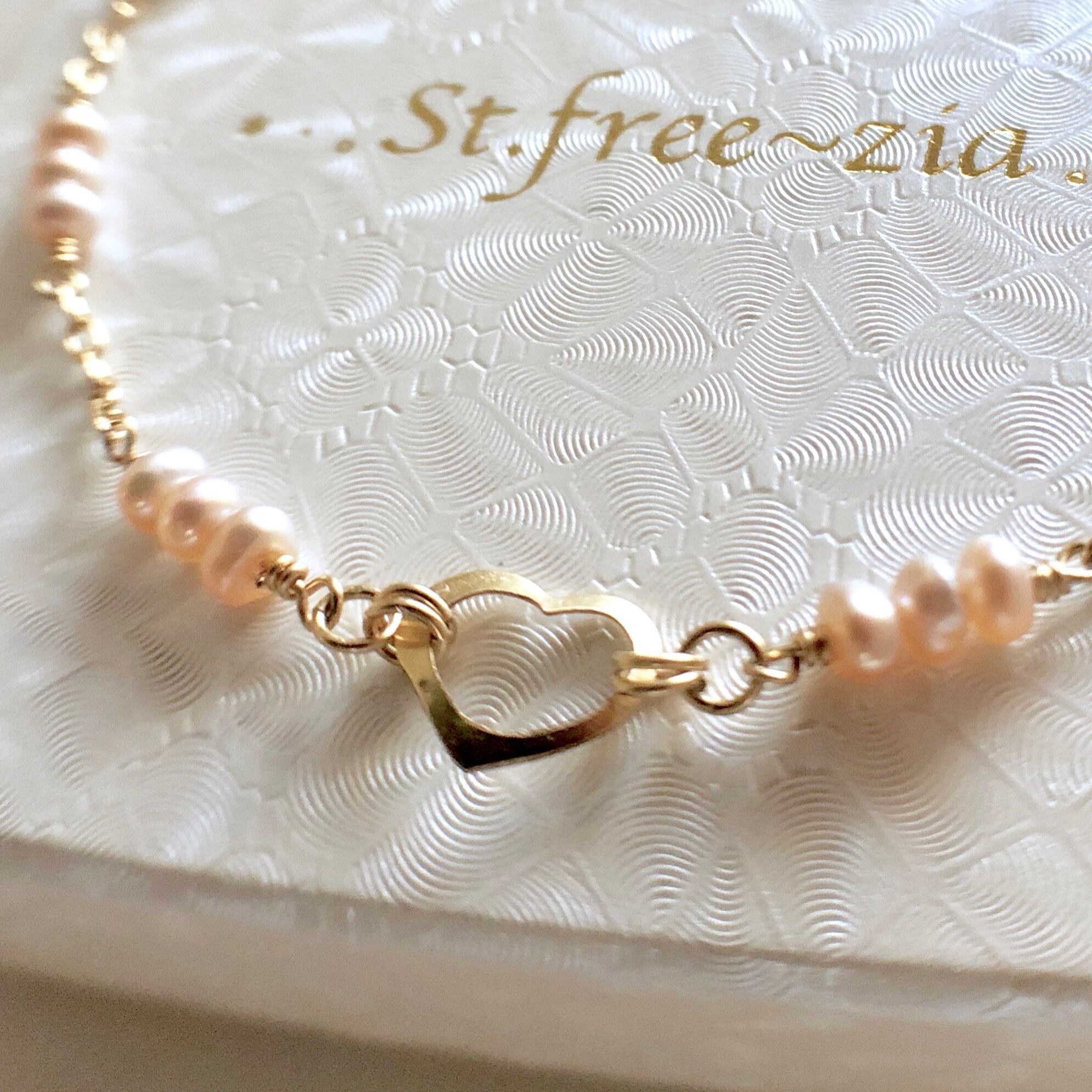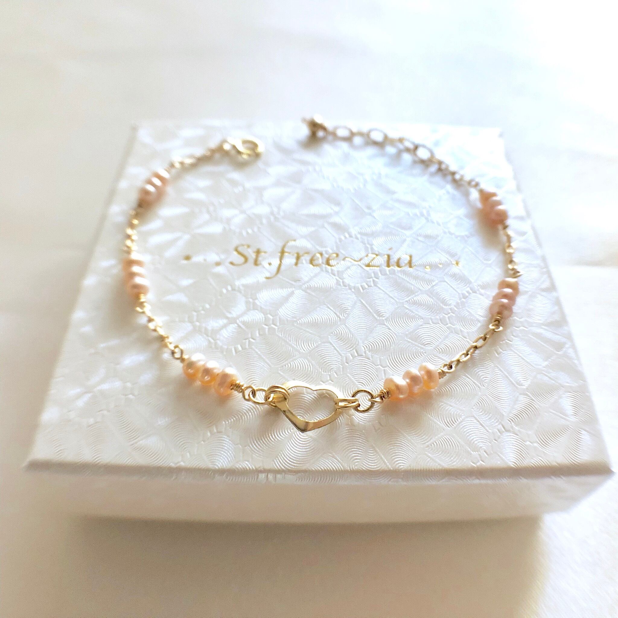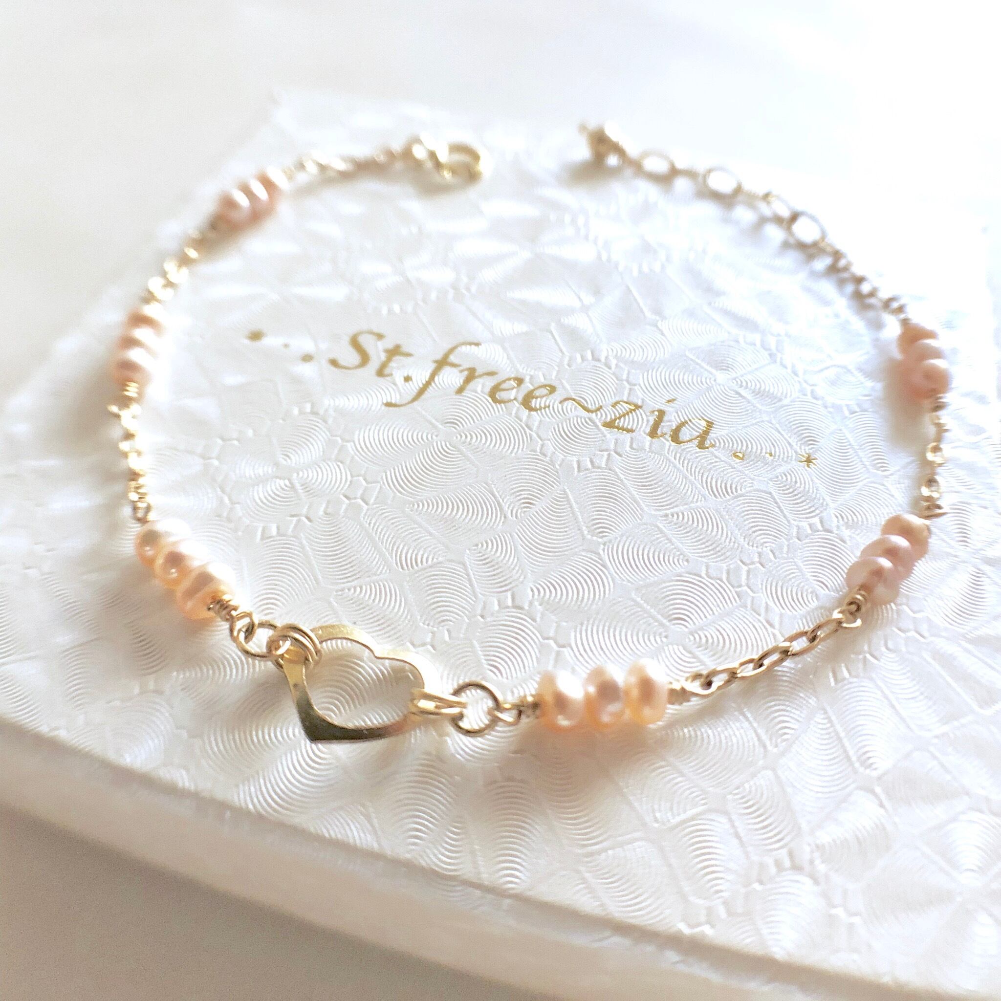 14kgf " 淡水パール (クラシックピンク) " のハートチャームブレスレット