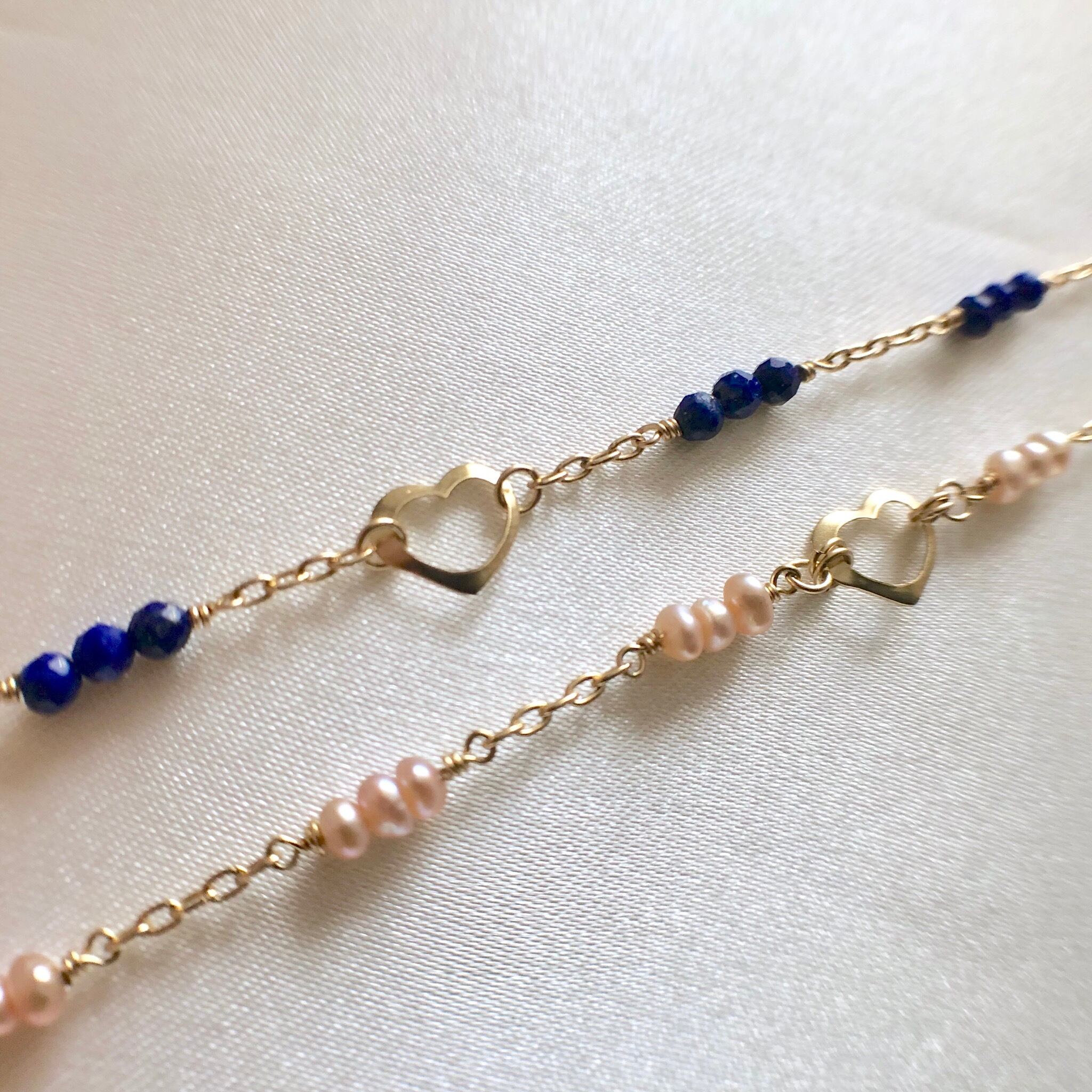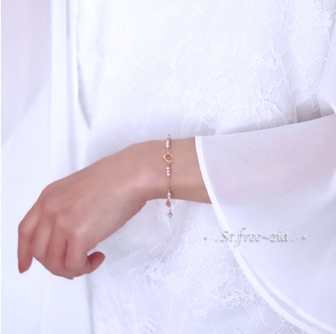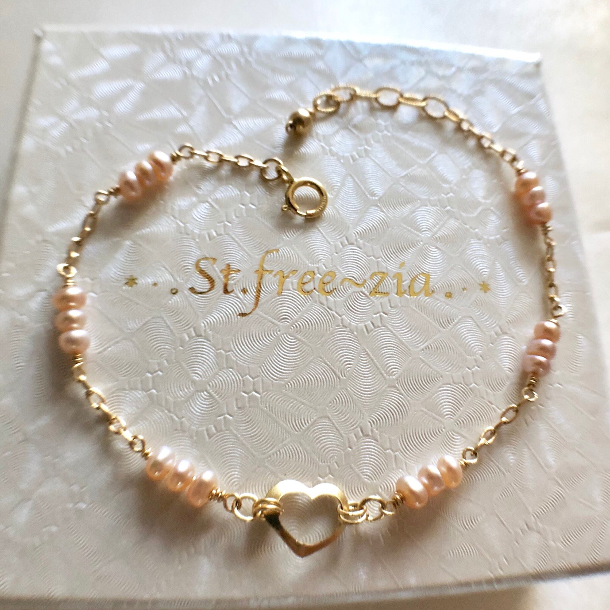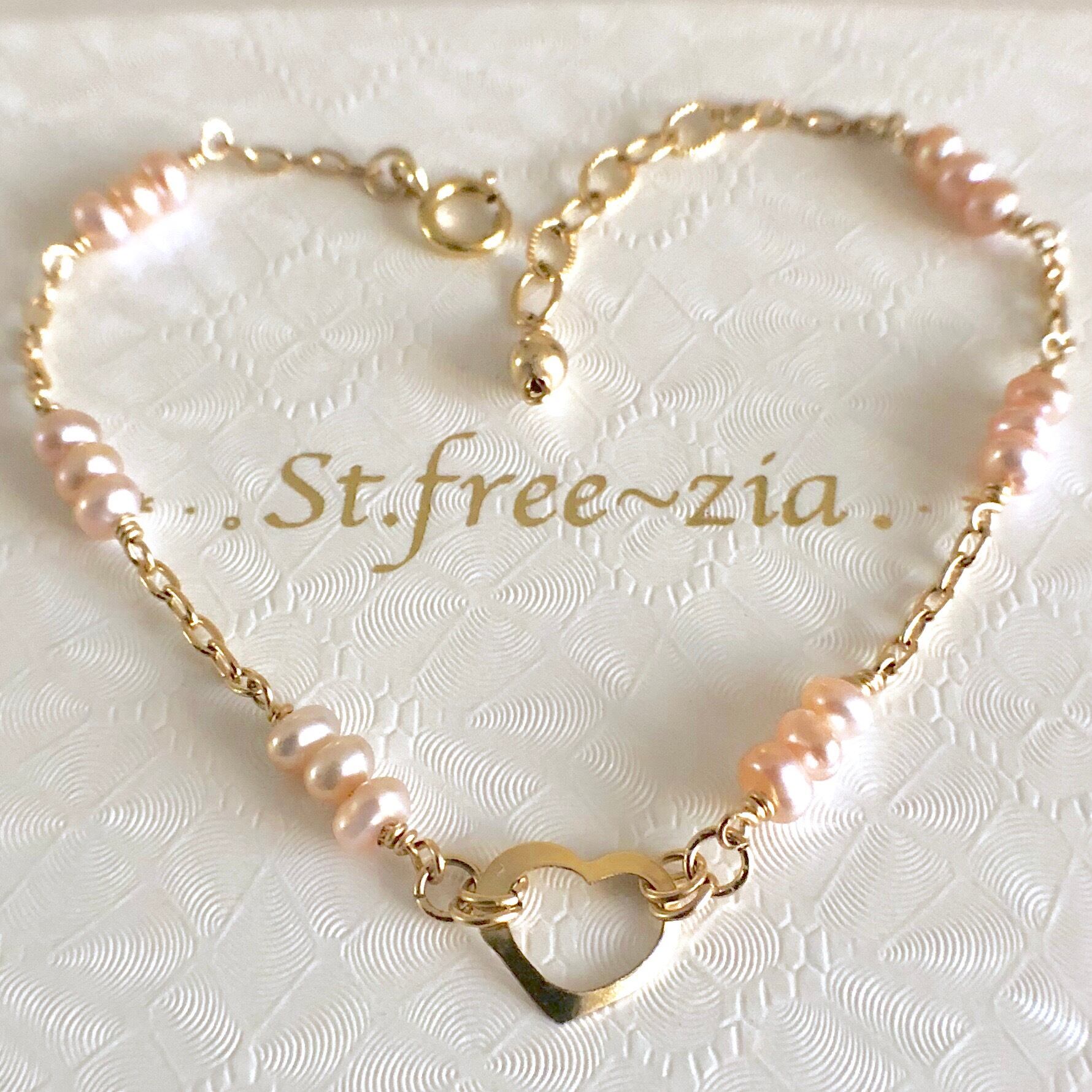 14kgf " 淡水パール (クラシックピンク) " のハートチャームブレスレット