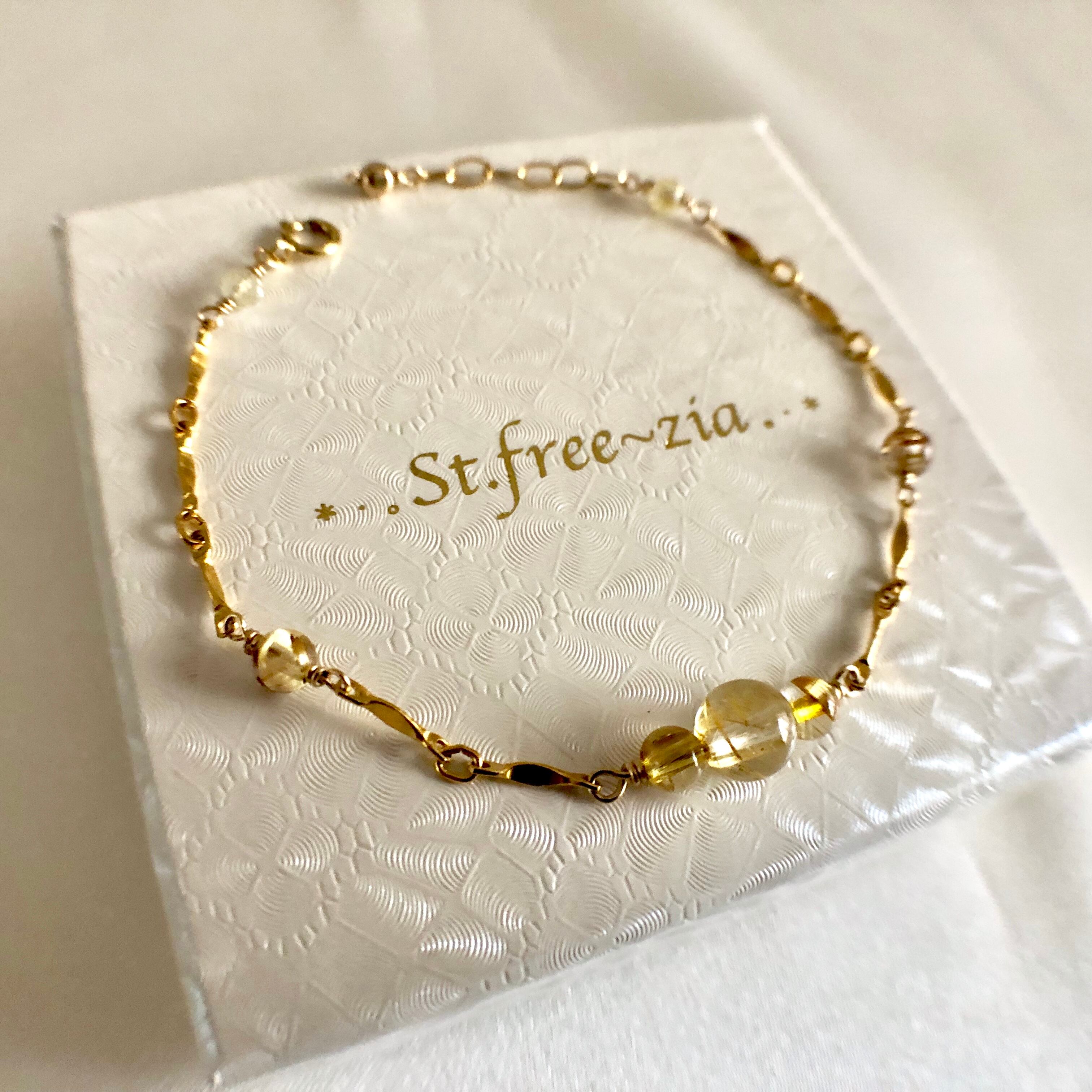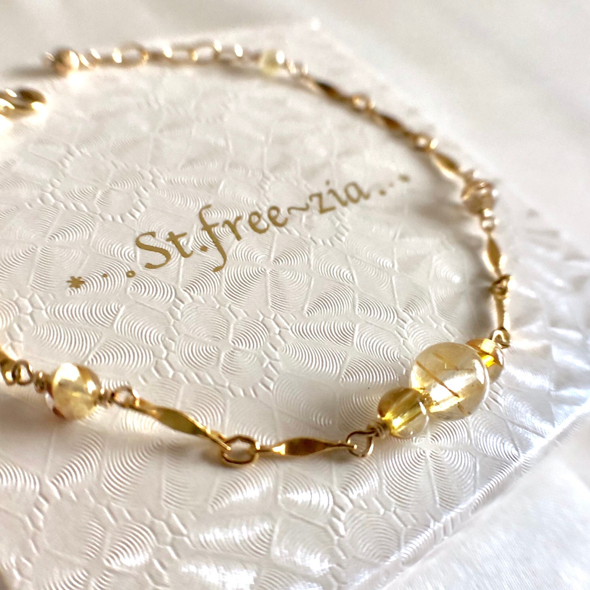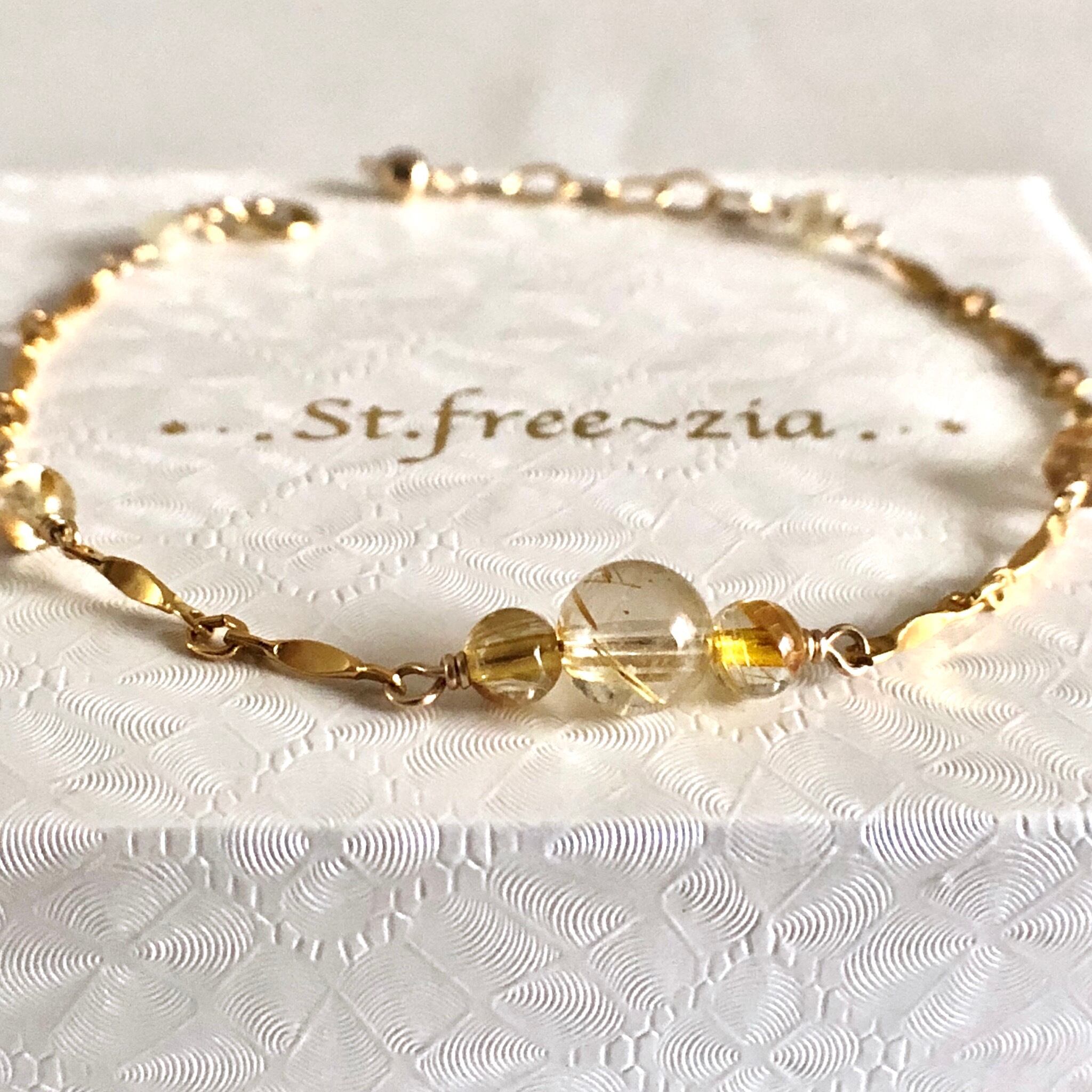 14kgf " ルチルクォーツ " の マーキスバーチェーンブレスレット