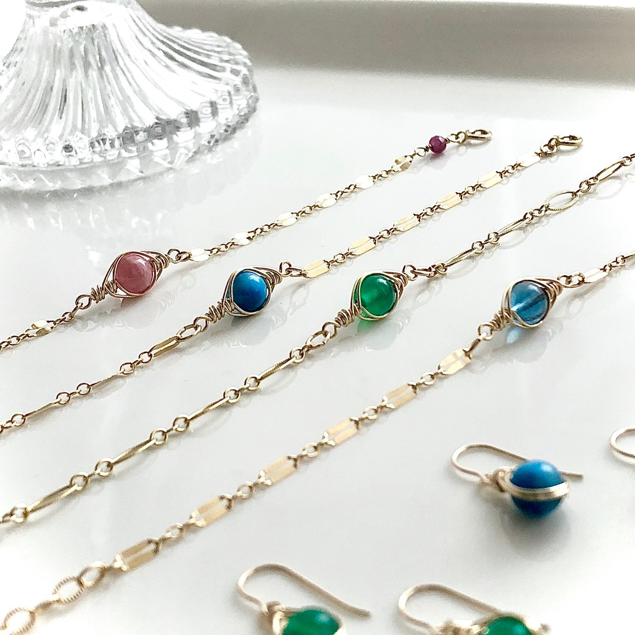 14kgfのワイヤーで天然石を丁寧に巻き上げてドレスアップしたブレスレットシリーズ☆