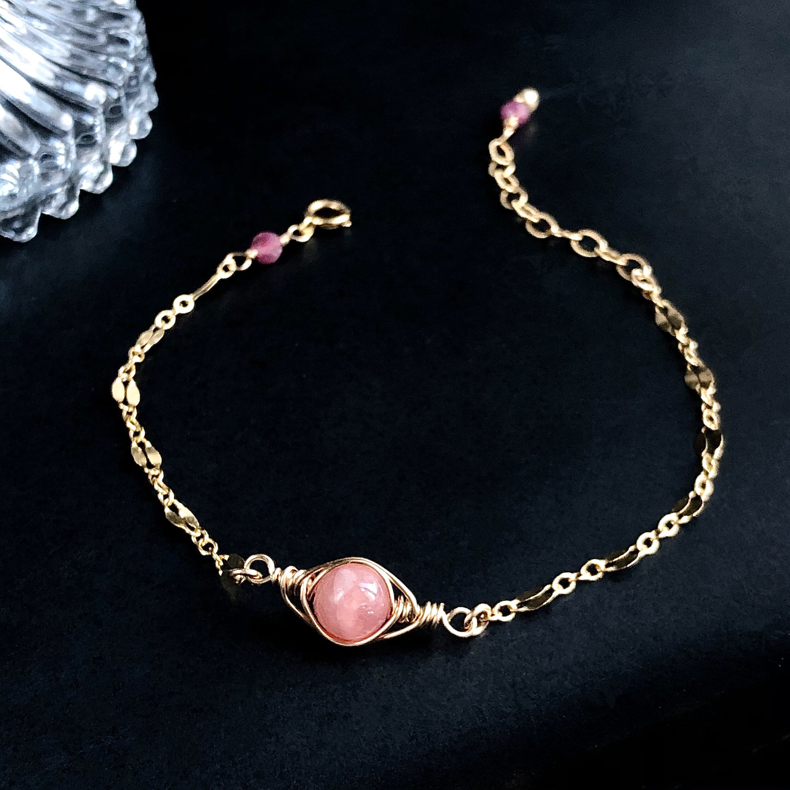 14kgf インカローズ ( アルゼンチン産 )のワイヤーラップ・リーフチェーンブレスレット