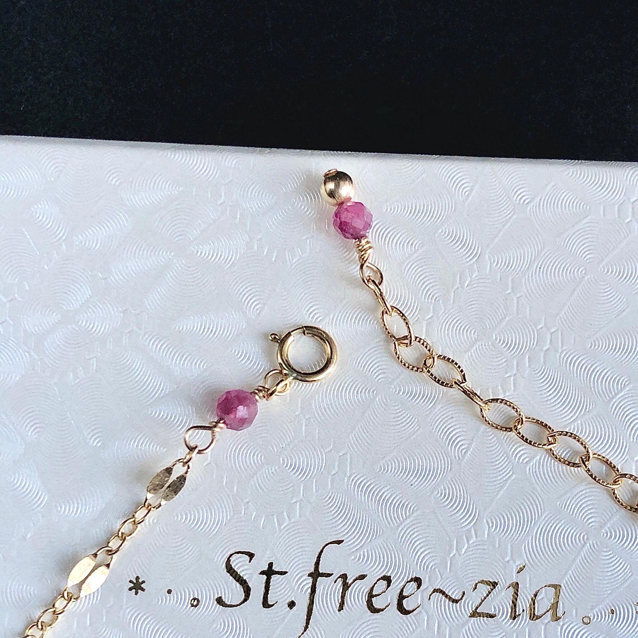 うっすらとホワイトが混ざった温かなピンク色のアルゼンチン産インカローズ と、動く度にキラキラ輝くリーフチェーンを合わせました。