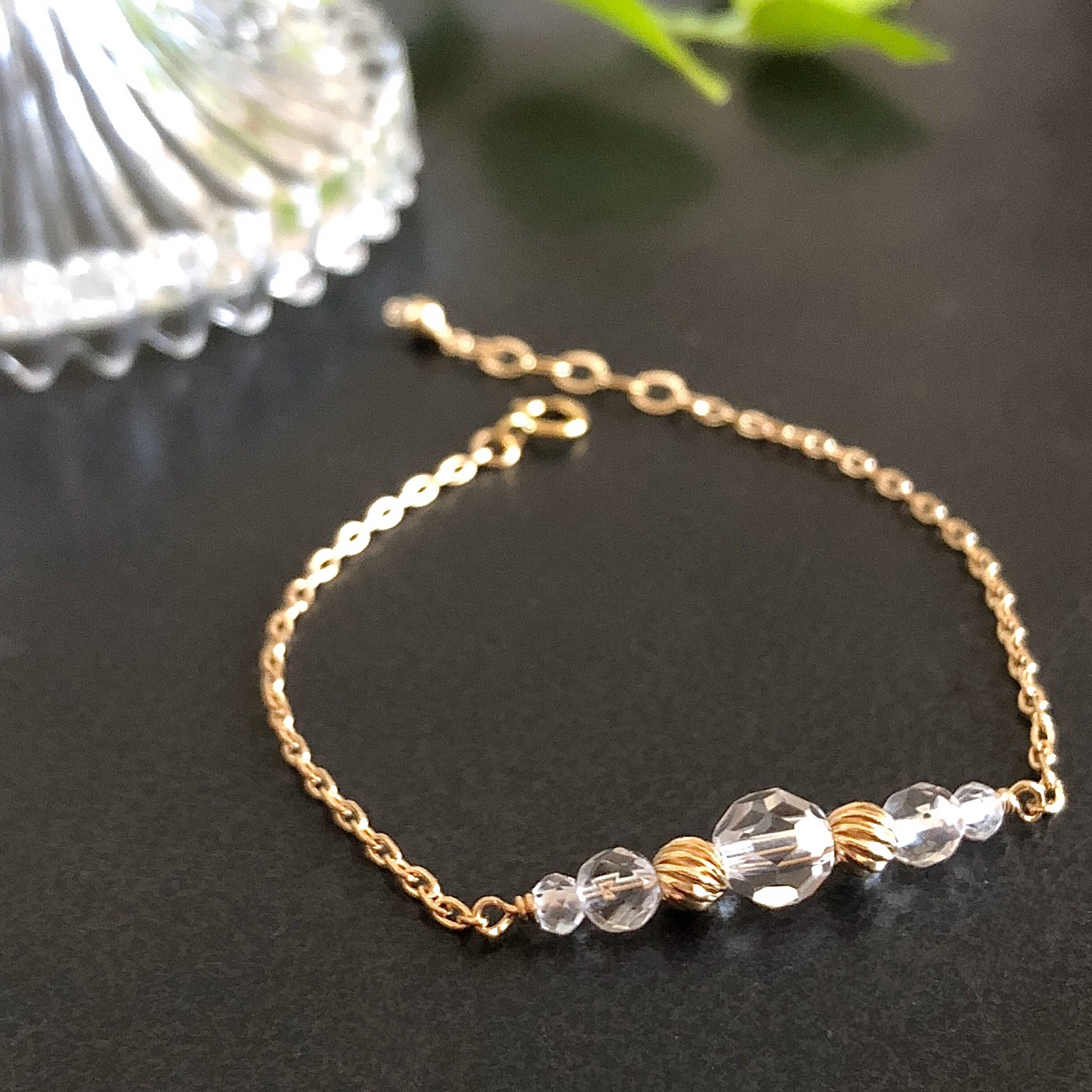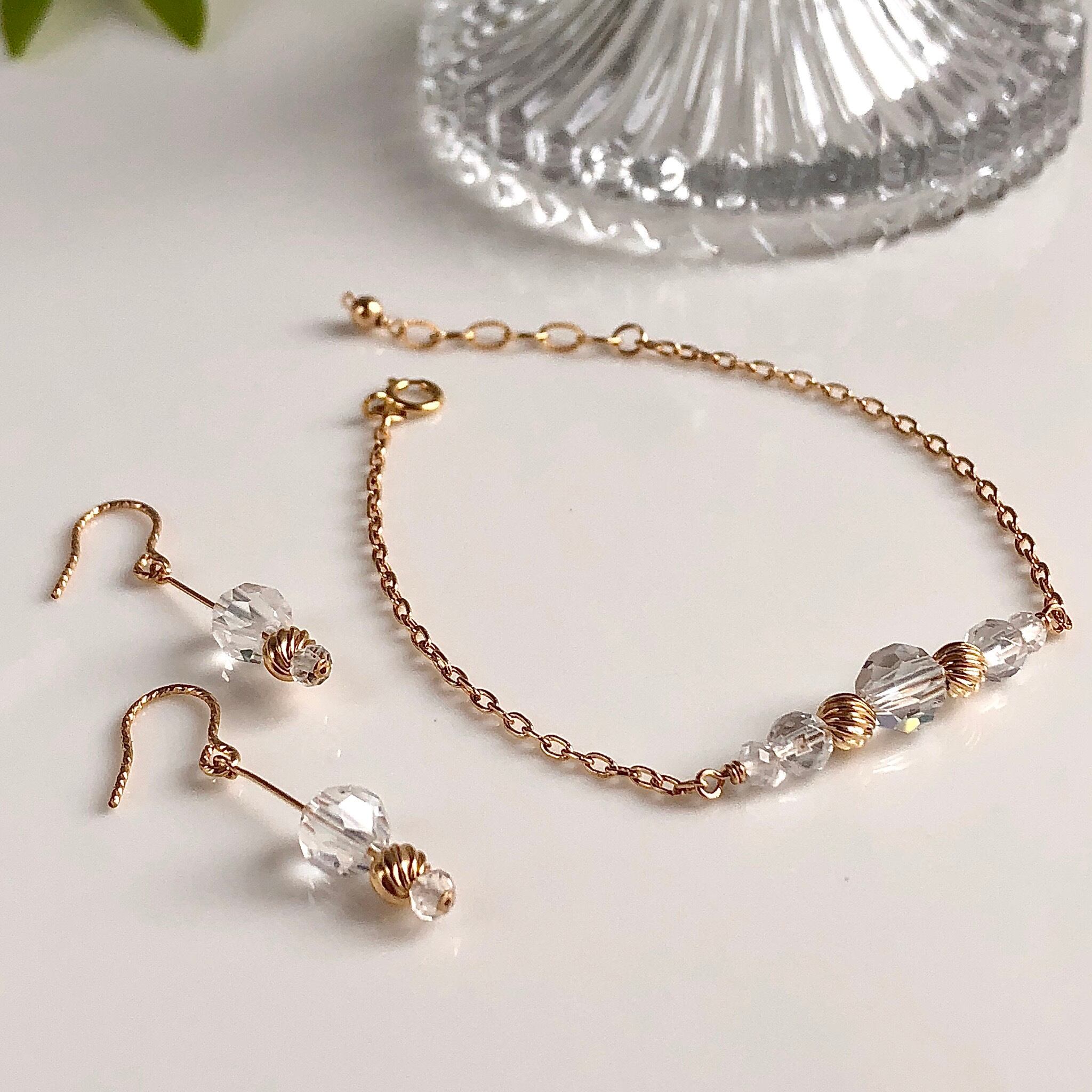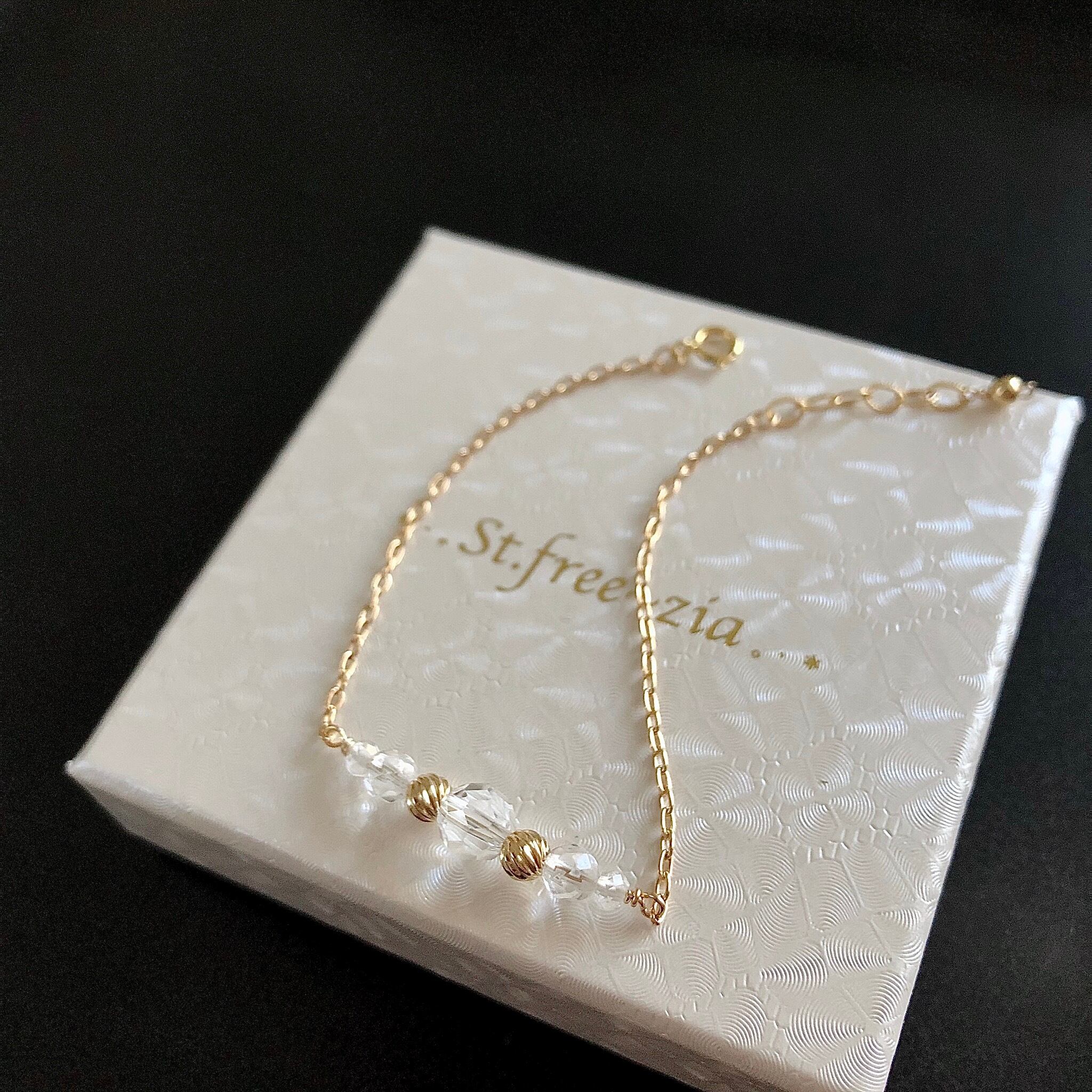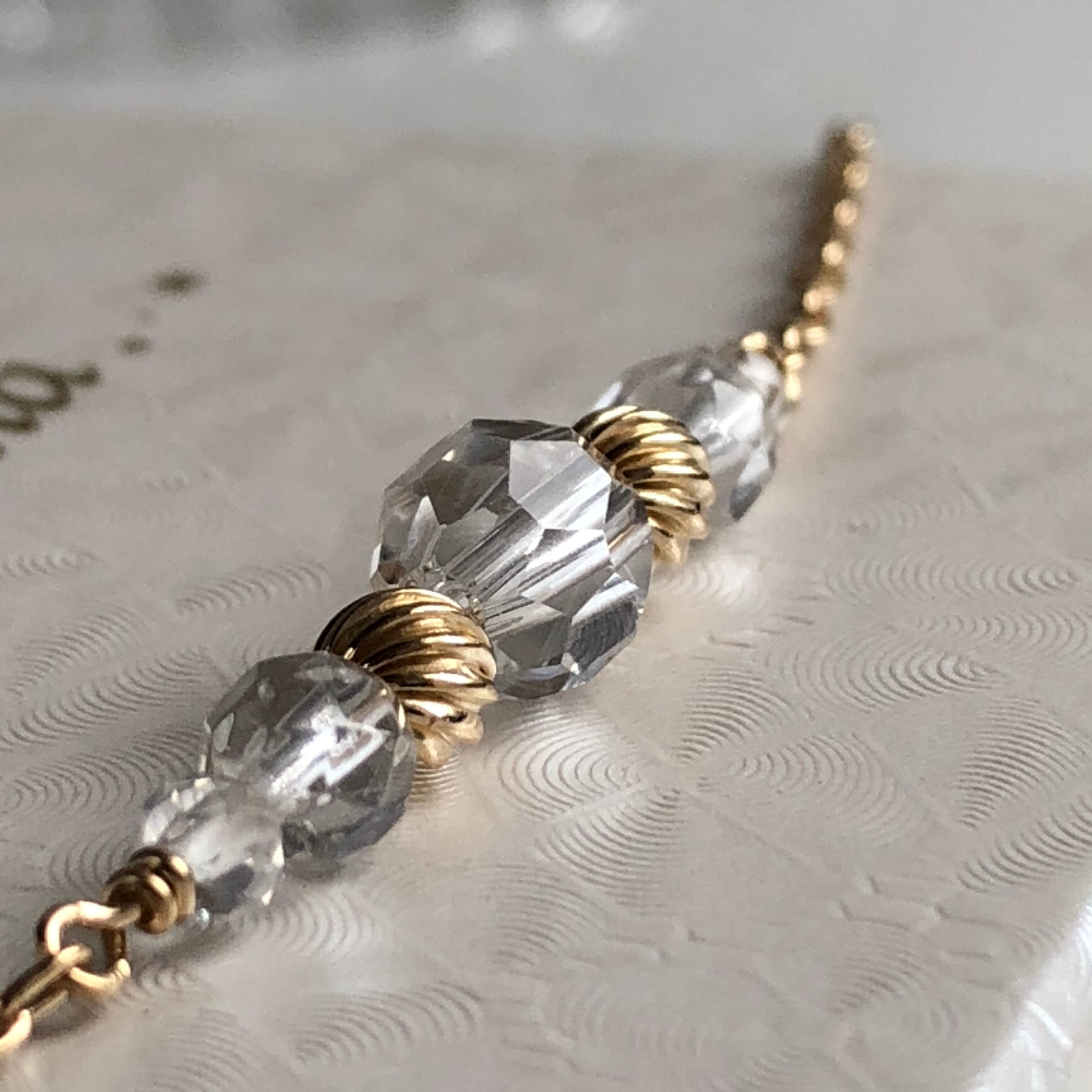 14kgf "クリスタルバッキーボール"&ツイストビーズのバー*ブレスレット