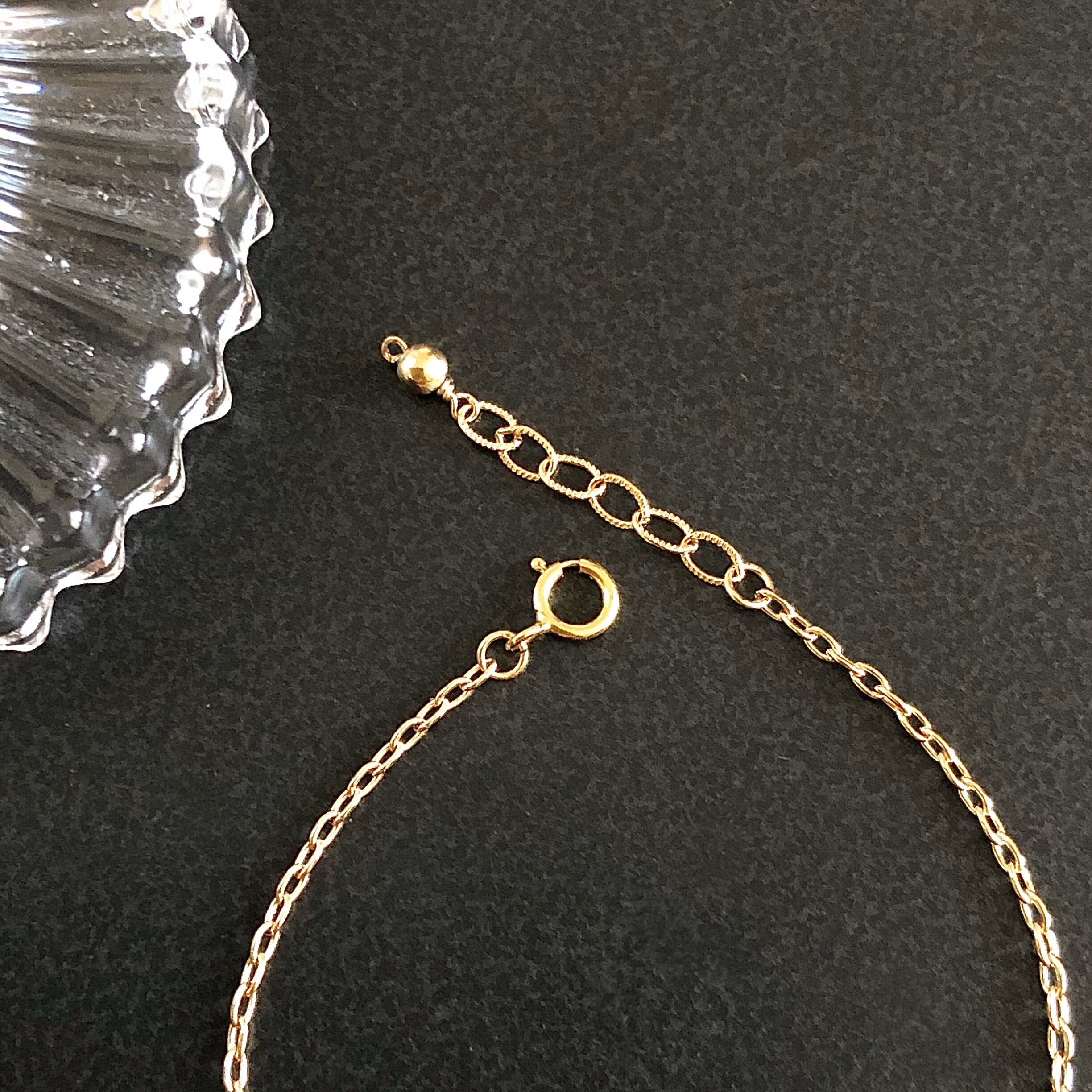 しなやかでスッキリとした長アズキチェーンを合わせ、スタイリッシュな印象のブレスレットに☆